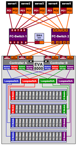 Logical Design of SAN Jackie Chen Storage August 24, 2011August 24, 2011 1 Minute I found this diagram in a HP EVA SAN manual. It demonstrates the logical design of a SAN that can be used in a high-availability solution. Very useful for helping user understand how SAN works inside. For example, the Hyper-V cluster. Share this: Click to share on LinkedIn (Opens in new window) LinkedIn Click to share on X (Opens in new window) X Click to share on Facebook (Opens in new window) Facebook Click to email a link to a friend (Opens in new window) Email More Click to print (Opens in new window) Print Click to share on Reddit (Opens in new window) Reddit Like Loading... Related Published by Jackie Chen View all posts by Jackie Chen Published August 24, 2011August 24, 2011