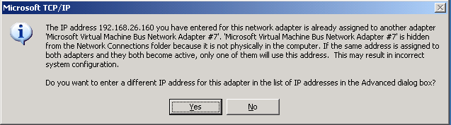 I restored a Hyper-V virtual machine by creating a new VM and use the existing VHD file. After the server booted up, I logon into it and tried to change the IP address to the original one. A warning popped up saying like ‘microsoft virtual machine bus network adapter is hidden from the network connection folder …’
