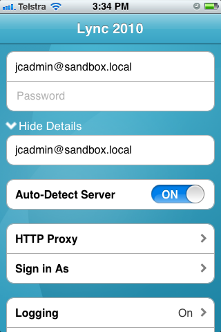 With this great tool, I was able to login into the Lync from my iPhone.