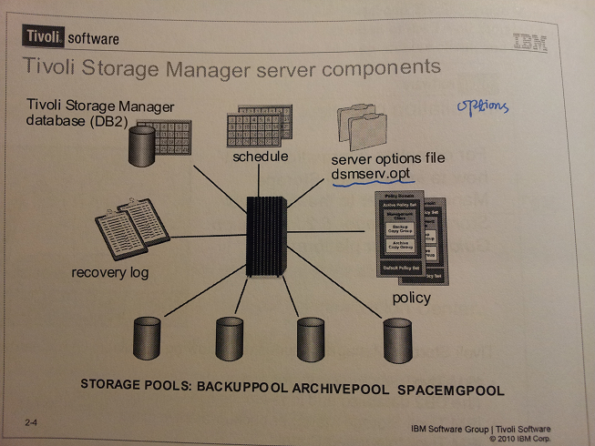 TSM database: DB2, where meta data is stored. The heart of the TSM system