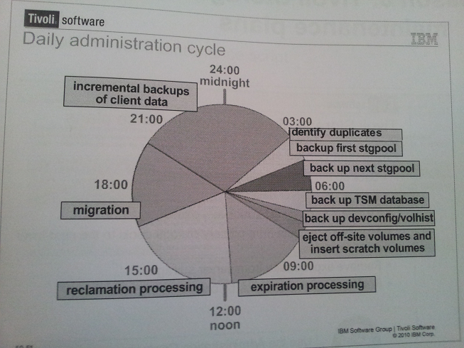 Snapshot backup (out-of-band) can be taken off-site. Full plus incremental backup series stays on-site for availability