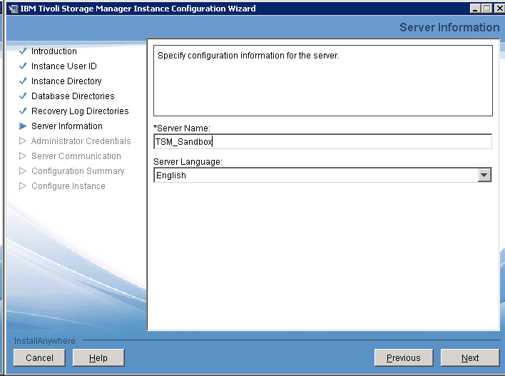 I name the TSM server as TSM_Sandbox