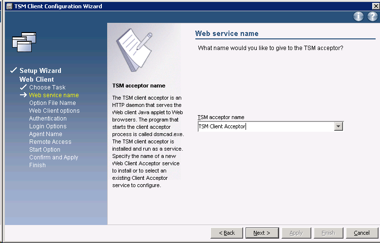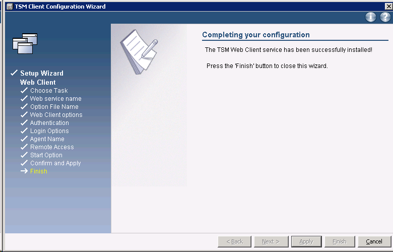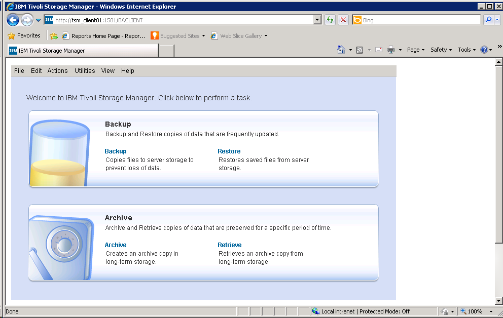 Now the web-based GUI client is ready. You can access this BA client on any remote machines by visiting the URL: http://tsm_client01:1581/BACLIENT