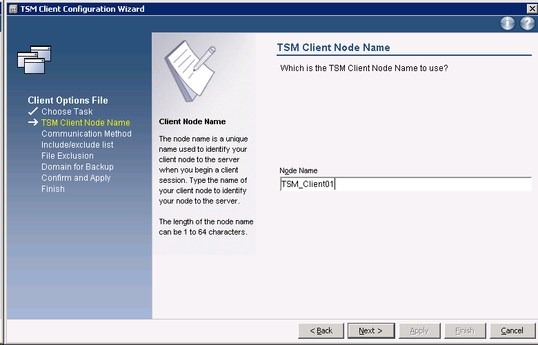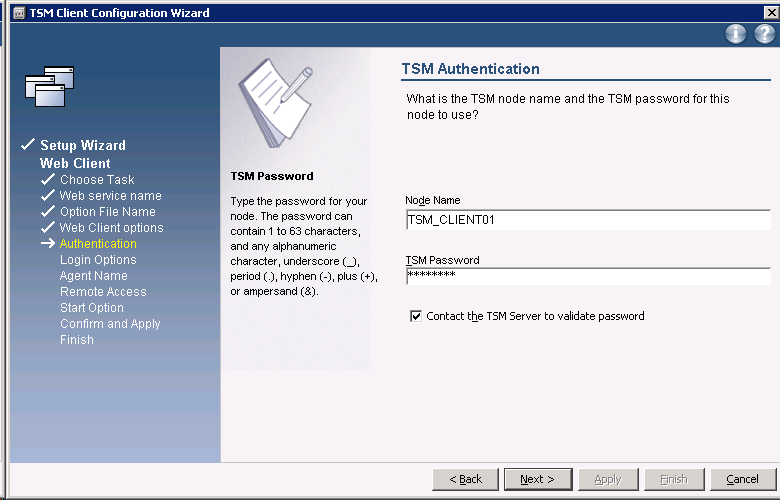 TSM_Client is the node name, Client01 is the password