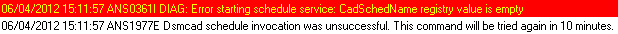 The CadSchedName value is missing in the Client Acceptor registry settings.