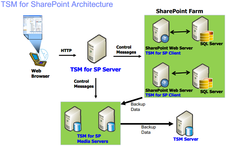 TSM for SharePoint actually is DocAve which is developed by AvePoint, and used by IBM as a OEM product. There are two components of TSM for SharePoint: Manager and Agent.
