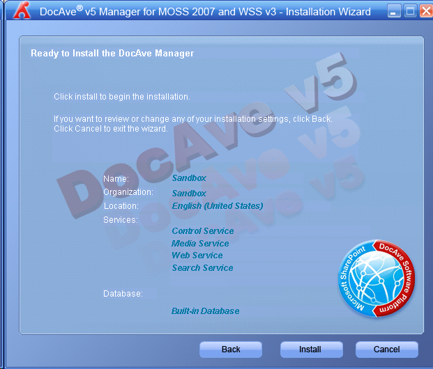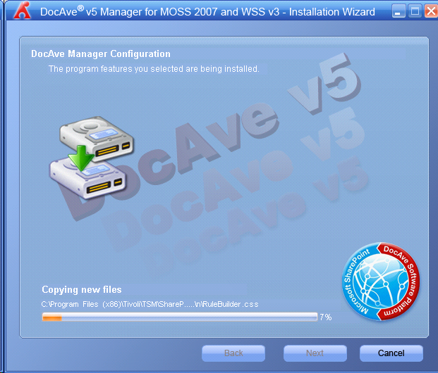 1) Login into TSM_SP_Server, and install TSM for SharePoint server (DocAve Manager).