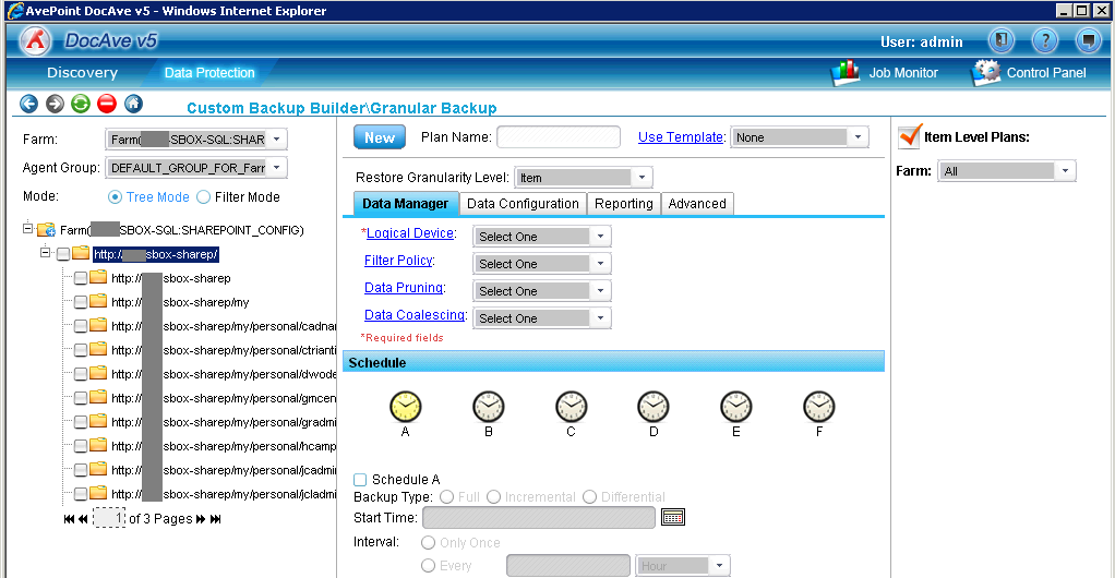 6) Confirm the SharePoint farm can be expanded in DocAve manager . Go to http://TSM_SP_Server:9080/docave, and verify the farm tree.