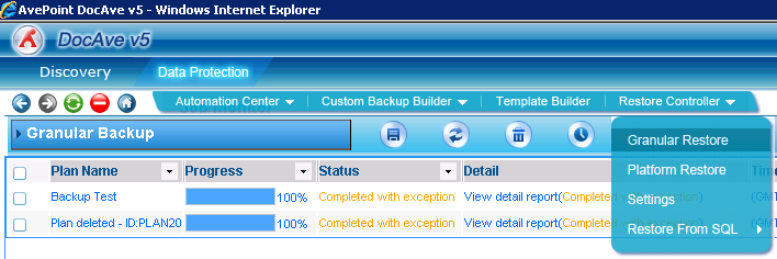 6) Now I am going to restore the file from the backup. Click ‘Restore Controller’ > ‘Granular Restore’.