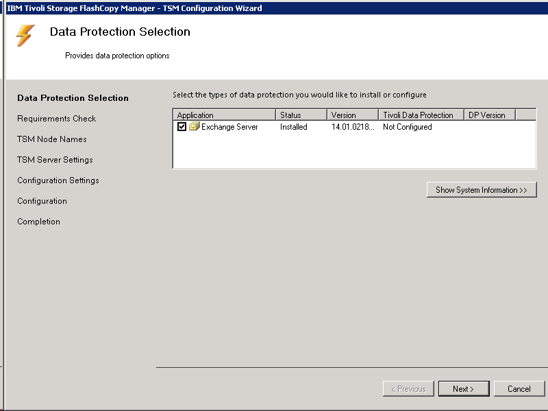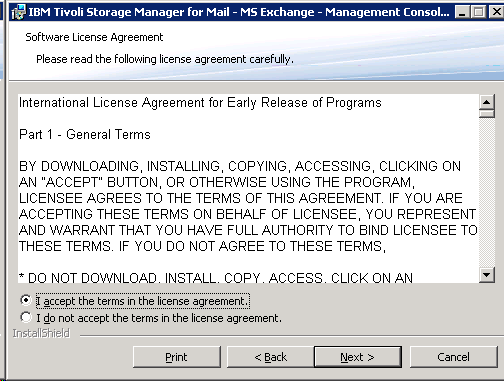 Here is my ‘How To’ instruction of installing TSM Data Protection Exchange. TSM can do both legacy and VSS backup against Exchange 2007, but only support VSS backup of Exchange 2010. The Exchange sandbox is 2010, so I only can use VSS backup which mean I have to install the TSM BA client (as it provide the VSS requestor).
