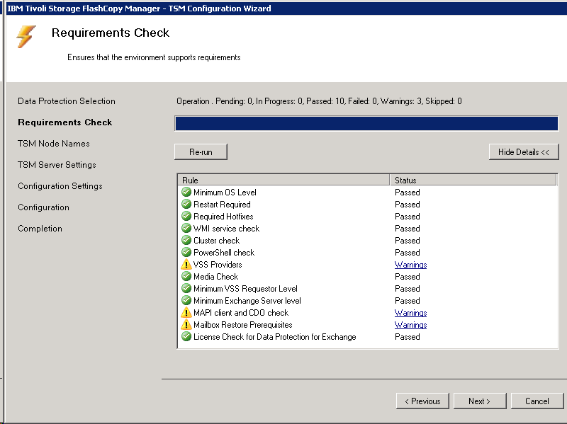 It is important to run a VSS diagnostic, as TDP only support VSS backup of Exchange 2010.