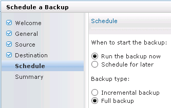 6) For test, I will only do a one time full backup. You are able to set up schedule either incremental or full backup here.