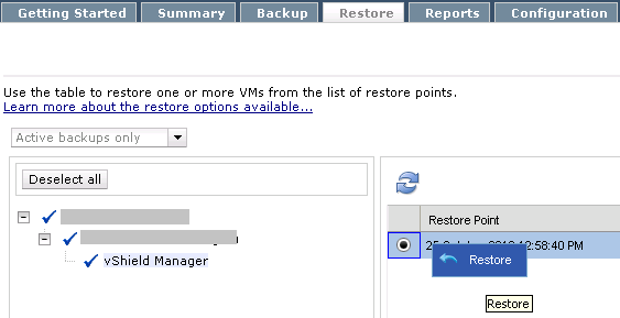 10) If you want to restore the VM. Choose the VM in the restore tab, and pick which backup timestamp you want to restore.