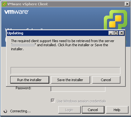 You may see the following window before. It happens when you try to connect to the new version of vCenter from the old version vSphere client.