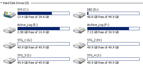 In my TSM sandbox, I will configure the dynamic volumes to use the four 50G drives (G, H, I, J).
