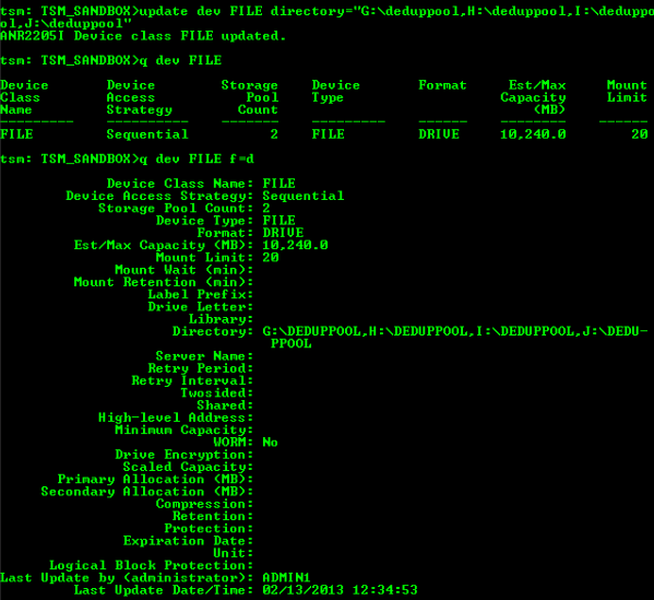 update dev FILE directory="G:\deduppool,H:\deduppool,I:\deduppool,J:\deduppool"