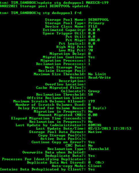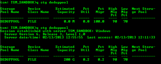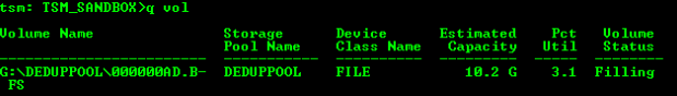 In my previous post, I created a few fixed volumes for the backup pool in my TSM sandbox. In some scenarios, you may find it is flexible to use the dynamic volumes.