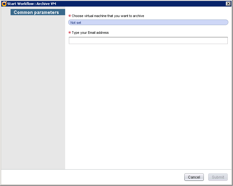 The purpose of having this workflow is to allow the user to backup or archive the virtual machine by themselves. In my example, I use TSM (Tivoli Storage Manager) as the backup/archive solution.