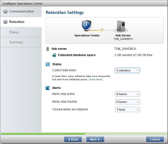 11) Configure the retention settings.