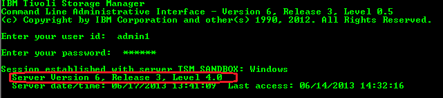 It is a little bit confusing about the TSM version convention, as different components may be at different versions. In my case, I am going to upgrade my TSM to 6.4.1. The server version is actually 6.3.4 instead of 6.4.1.