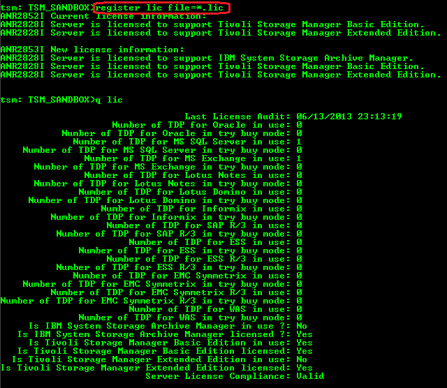 Then i tried to start the TSM Server service (Running on Windows) without luck, after trying to start the server from command line i got an error pointing to DB2 licenses (see below)