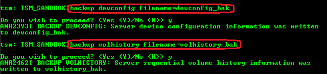 2) Backup device configuration and volume history (the backup files can be found in the server instance directory).