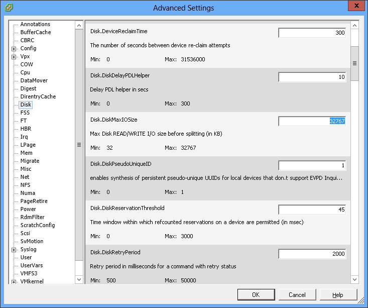The HP EVA storage is optimized to perform at 128KB Max IO transfer size or less. If the host operating system uses large block size, it may reduce the storage performance. For example, ESXi use 32MB by default. To tune the value, you can go to host software advanced settings.