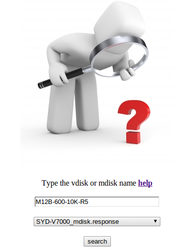 The logic is pretty straight: The user submits the vdisk/ mdisk name and choose the performance type, then the process_report.cgi script will call the find_target bash script to find the related graphs and generate a result.html page then present it to the user.