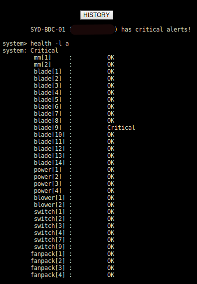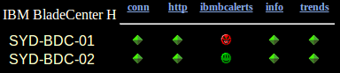 Similar to the IBM StorWize V7000 SAN Xymon monitoring script, I wrote another script to monitor the IBM BladeCenter system status.