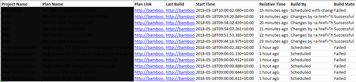 Want to get insights of your Bamboo builds? Here is a script that I wrote to generate the report in spreadsheet.