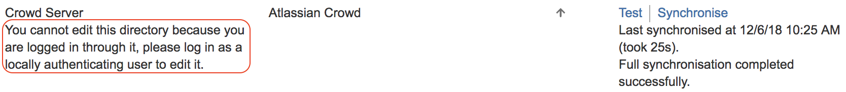 You may see this message “You cannot edit this directory because you are logged in through it, please log in as a locally authenticating user to edit it.” when you try to edit the directory settings in Confluence or Jira.