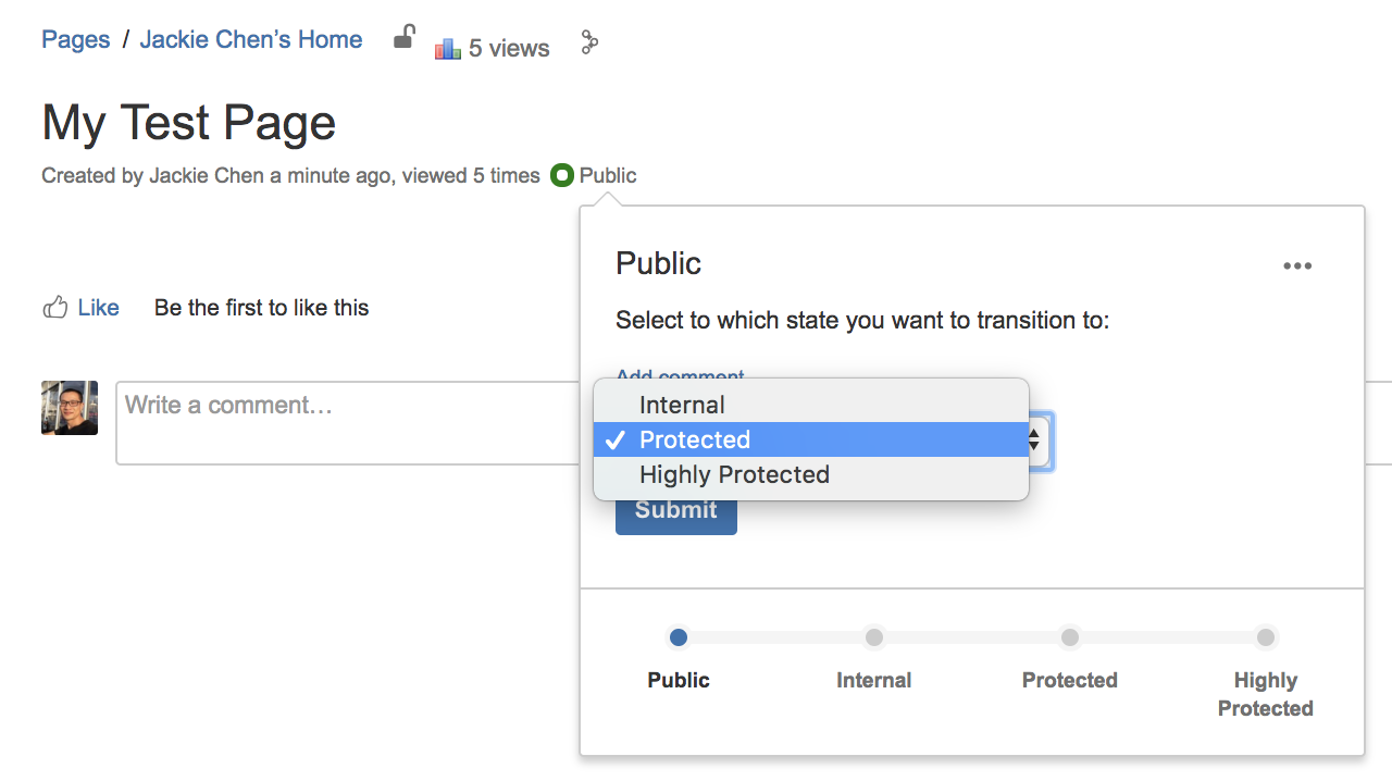 I was working on a data classification project a few months ago, and one of systems that needs to be classified is Confluence. The data on Confluence can be Public, Internal, Protected and Highly Protected.