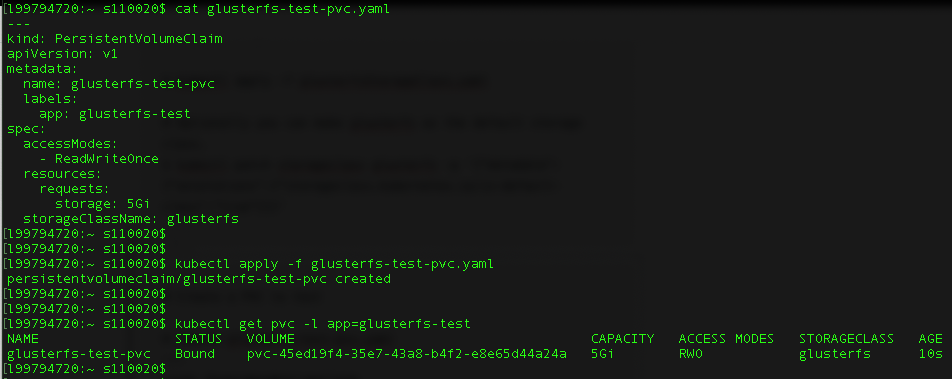 $ kubectl apply -f glusterfsStorageClass.yaml