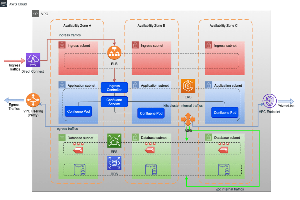 This is how I designed to run Confluence Data Center on Kubernetes (AWS EKS).