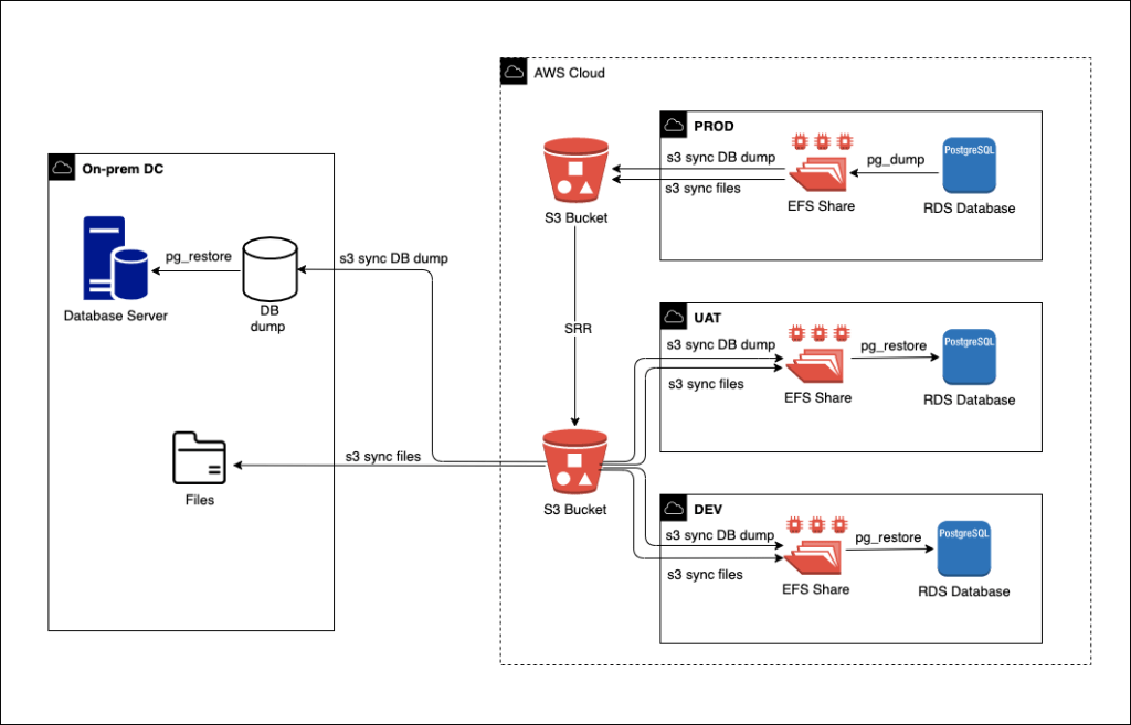 After the cutover is done, we sync the files back to the on-premise datacenter from S3. So we can have a copy of data on-premise which is used for the disaster recovery site. Also we use the solution for refreshing the lower environment.