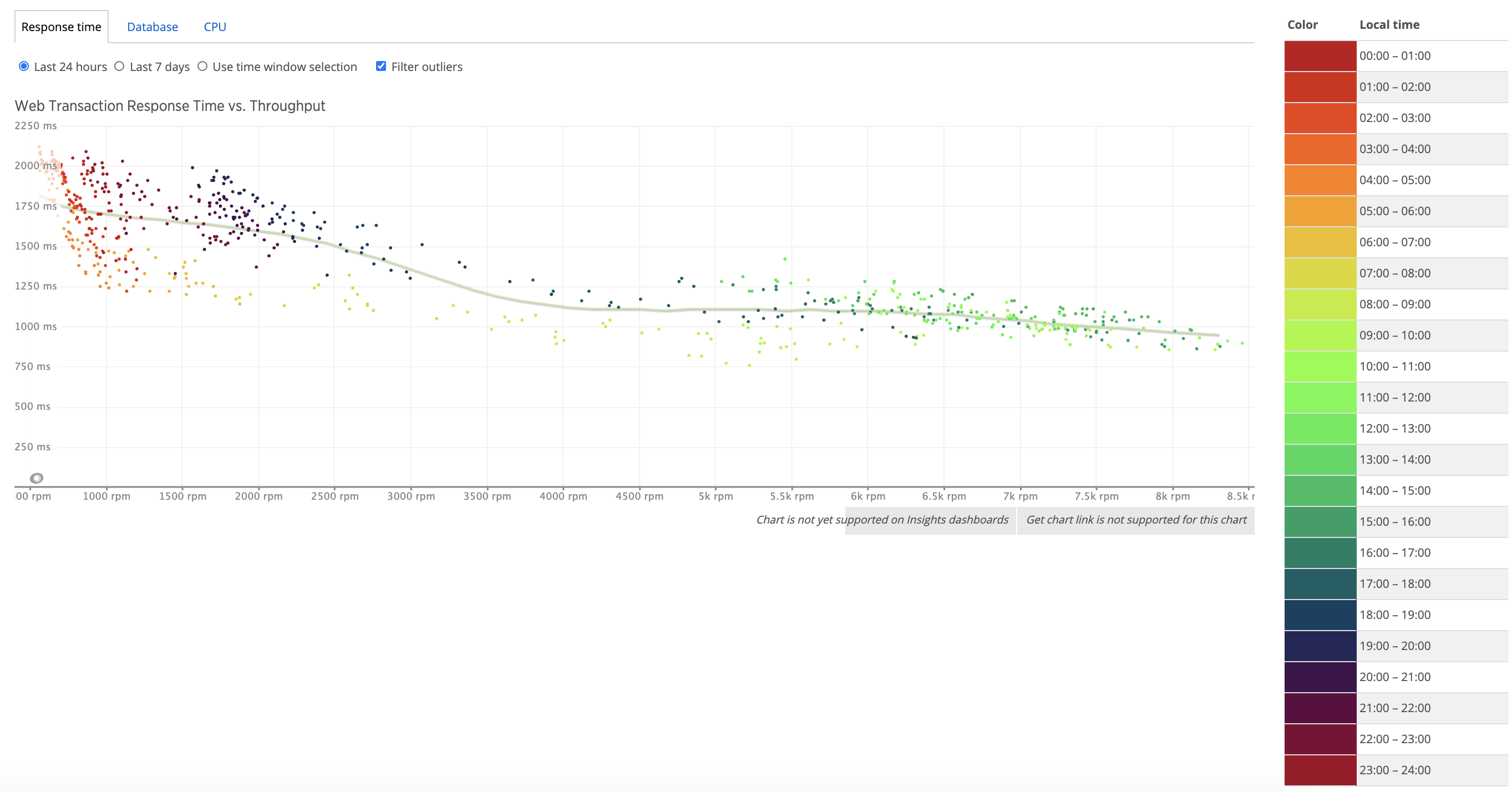 During the working hours, the normal load is between 6000 to 7500 RPM (request per minute). And the two node cluster is still able to provide satisfying response time while the load ramps up to 8000+ RPM.