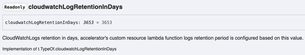 Additionally, the LZA documentation is auto-generated via typedoc which is brief and not very non-developer friendly. For example, a question for you – what will happen if there is a “cloudwatchLogRetentionInDays: 180” setting in the global-config.yaml?