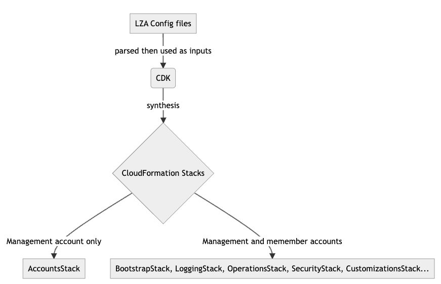 From a developer’s perspective, LZA is an abstraction layer which hides the complexity of setting up a landing zone on AWS. This is especially useful for the customers who are new to AWS, as they don’t necessarily need to have expertise in CloudFormation, CDK and AWS SDK to setup a landing zone with LZA. All they need to maintain are just a few configuration files.