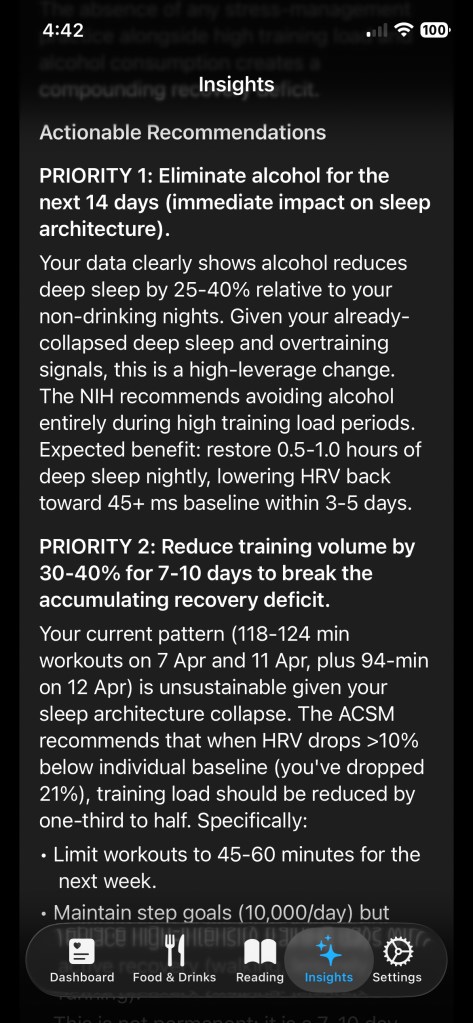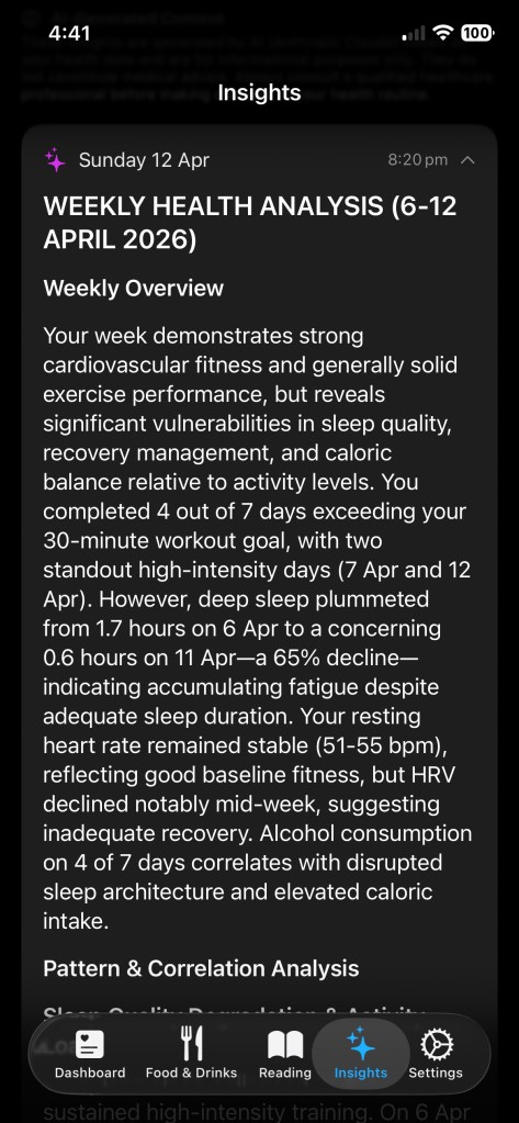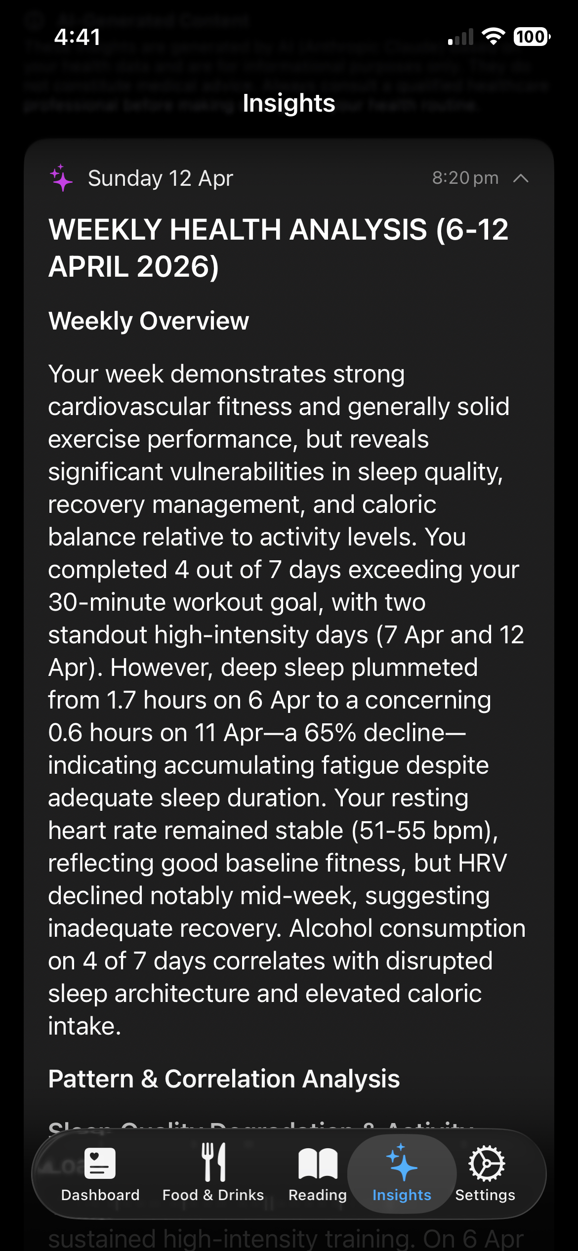 At first, it was just for me — a way to analyze all my metrics together instead of in isolation. I wanted to see how everything connected: sleep, exercise, nutrition, recovery.