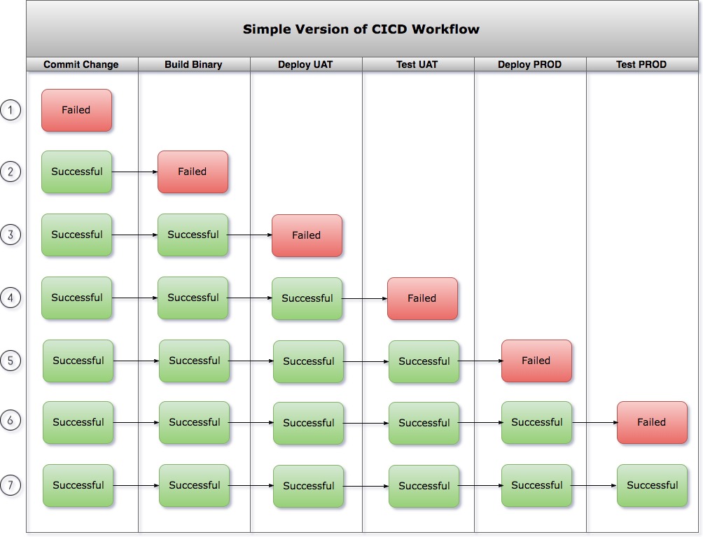 Above is my simple version of CICD workflow that I use as a guidance in day to day work. A bit explanations on how to use it. The workflow has six stages and seven scenarios. Six Stages: Commit Change: When user commit changes to code repository. Build Binary: When CI server builds the binary to … Continue reading Simple version of CICD Workflow
