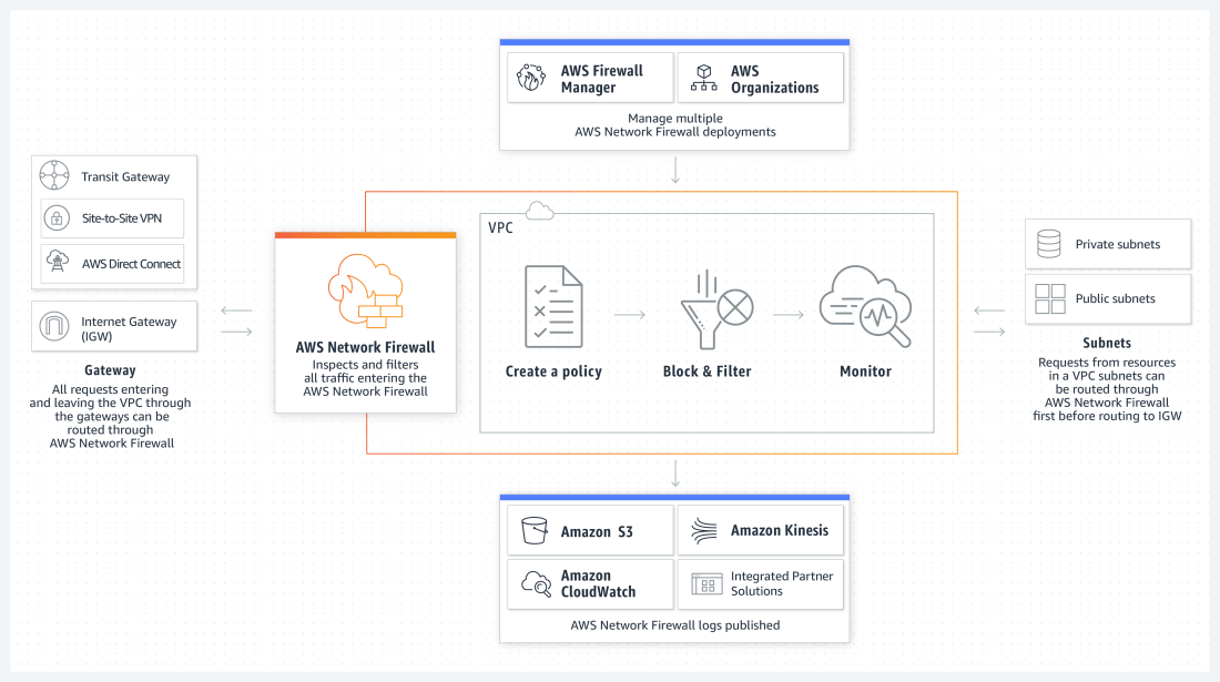 AWS Network Firewall is a high-available and scalable firewall service that provides network protections for VPC, which is a supplement to the existing security services. Security group protects computing resources (EC2, Lambda, RDS...)NACL (Network Access Control List) protects subnetsWAF (Web Application Firewall) and Shield protects frontend resources (ELB, CloudFound, API Gateway) There are quite a … Continue reading Two Examples of using AWS Network Firewall